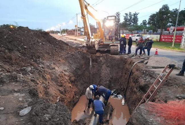 Desde la SAT explicaron que una empresa que realiza excavaciones en la zona rompió una cañería. Los barrios capitalinos de Presidente Perón, 240 Viviendas, Elena White, Policial y Los Plátanos.