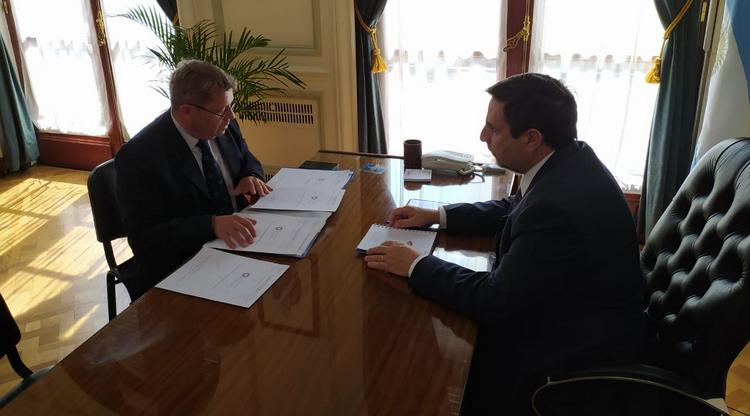 El secretario ejecutivo médico del Siprosa, Luis Medina Ruiz, recibió en Casa Central al coordinador de Seguridad Física y Patrimonial, Federico Jordan por el convenio entre el Ministerio de Salud Pública y el Ministerio de Seguridad respecto a la realización de reuniones interministeriales.