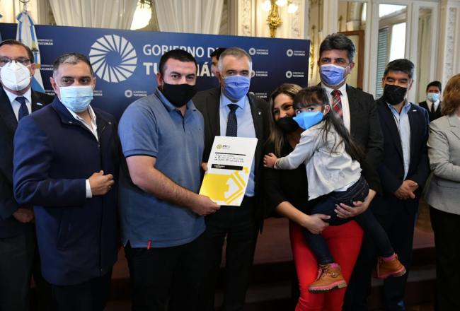 Acompañado por el ministro de Obras Públicas, Fabián Soria; y la interventora del Instituto Provincial de Vivienda y Desarrollo Urbano, Nora Belloni; Jaldo sostuvo: “Una vez más el Gobierno de Tucumán hace realidad el sueño de tener la casa propia a 40 familias. Cuando estuvimos en el barrio haciendo la primera entrega, nos comprometimos a ir otorgando 20 viviendas cada 10 días y hoy estamos cumpliendo con la palabra”.