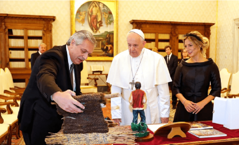 Luego del encuentro que mantuvieron durante casi 45 minutos, el presidente Alberto Fernández le entregó cuatro regalos al Papa. Un busto, un telar, un libro y un “calendario inclusivo” fueron los presentes que el mandatario argentino le otorgó al Sumo Pontífice ante la mirada atenta de la primera dama, Fabiola Yañez, y el grupo de periodistas acreditados en el Vaticano. Francisco, por su parte, le dio tres obsequios y le leyó una oración.