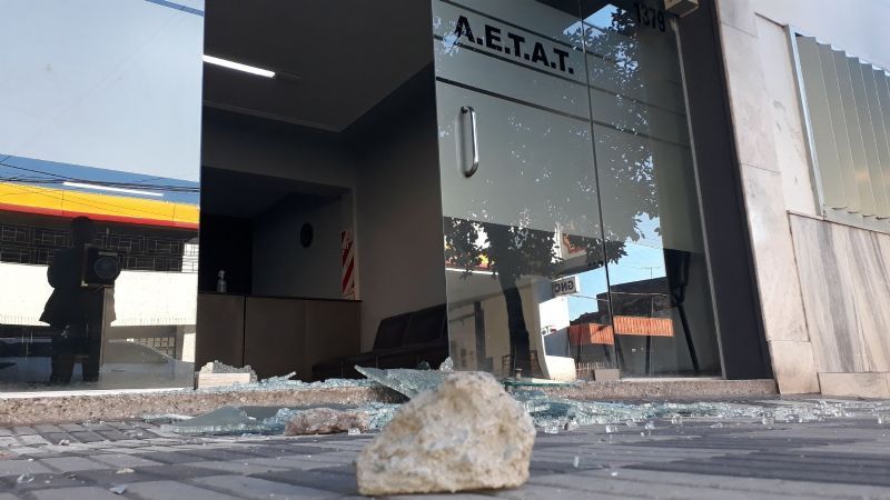 Sexto día sin colectivos: atacaron a pedradas las puertas de AETAT