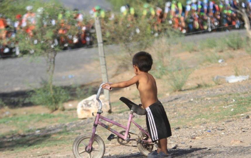 El pequeño Ulises vive en un humilde ranchito en la zona de Control Fiscal, en pleno desierto sanjuanino. Su foto fue publicada en la edición papel del diario local, el último domingo, en una de las notas sobre la competencia de ciclismo. Él no sabía que un fotógrafo inmortalizó ese momento, cuando ilusionado ve pasar al pelotón que pasaba por la Ruta 141. El diputado nacional Walberto Allende vio la foto y decidió visitar al nene.