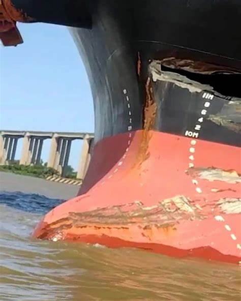 El barco de presunta bandera liberiana, llamado “En May”, venía navegando por el río Paraná de las Palmas y sufrió lo que en términos navieros se denomina “pérdida de gobierno” y por no contar con facultades para maniobrar impactó de costado contra uno de los pilotes del Puente Bartolomé Mitre del Complejo Zárate Brazo Largo, lo que le provocó una rajadura en la parte derecha de su casco, pero superficial y sin peligro de hundimiento.