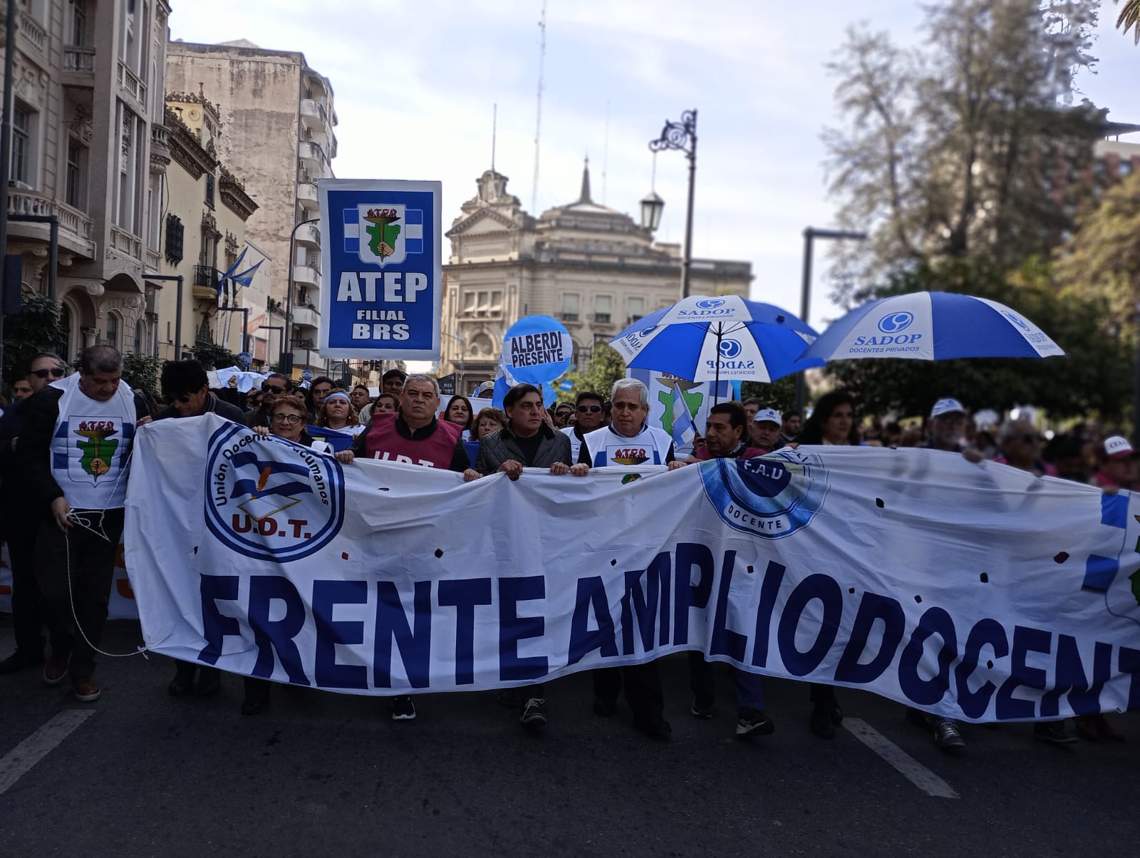 Un multitudinaria protesta de docentes se concentró en Plaza Independencia