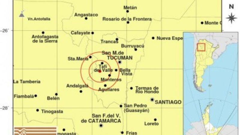El epicentro del sismo fue a unos 63 km al suroeste de San Miguel De Tucumán, a 154 km al norte de San Fernando Del Valle De Catamarca y 24 km al sur de Tafí Del Valle.