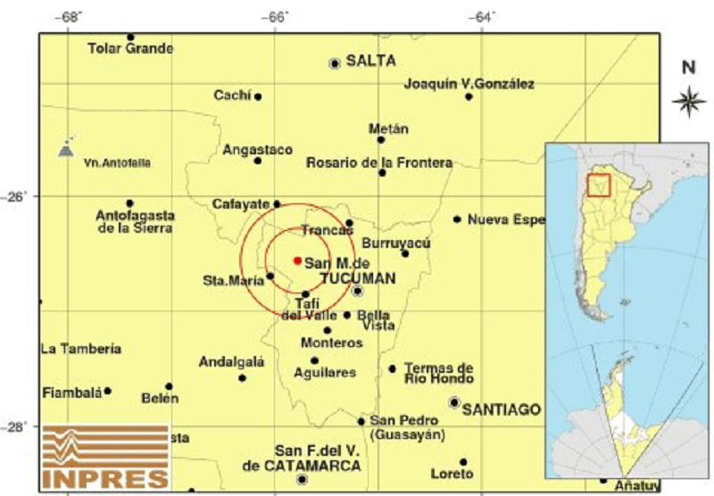 Este martes a las 3.05 el Instituto Nacional de Prevención Sísmica registró un temblor en Tucumán con epicentro a 72 km al noroeste de San Miguel de Tucumán, camino a los valles calchaquíes.
