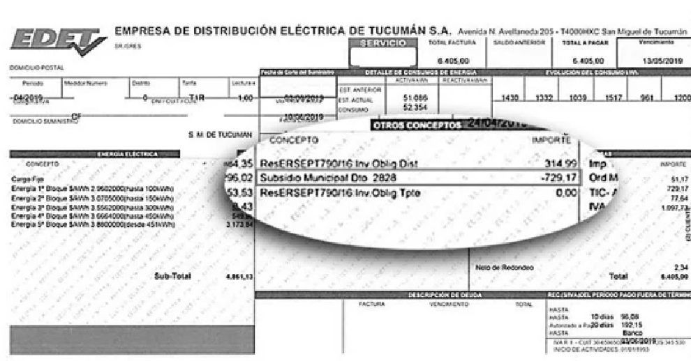 Debajo del apartado “Ordenanza Municipal 4.848” (que implica el cobro de tasas municipales para obras, mejoras del servicio y mantenimiento del alumbrado público), figurará el descuento “Decreto 2.828”, que anulará el valor de tasa municipal.